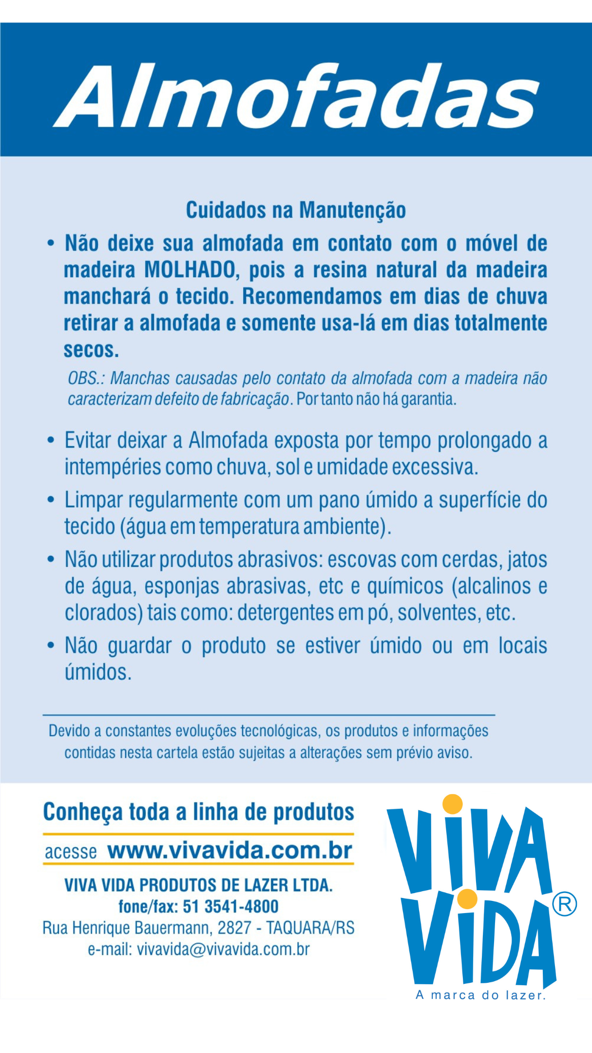 As imagens aqui apresentadas são ilustrativas. A Viva Vida se reserva o direito de alterar características gerais, técnicas e estéticas de seus produtos sem prévio aviso.