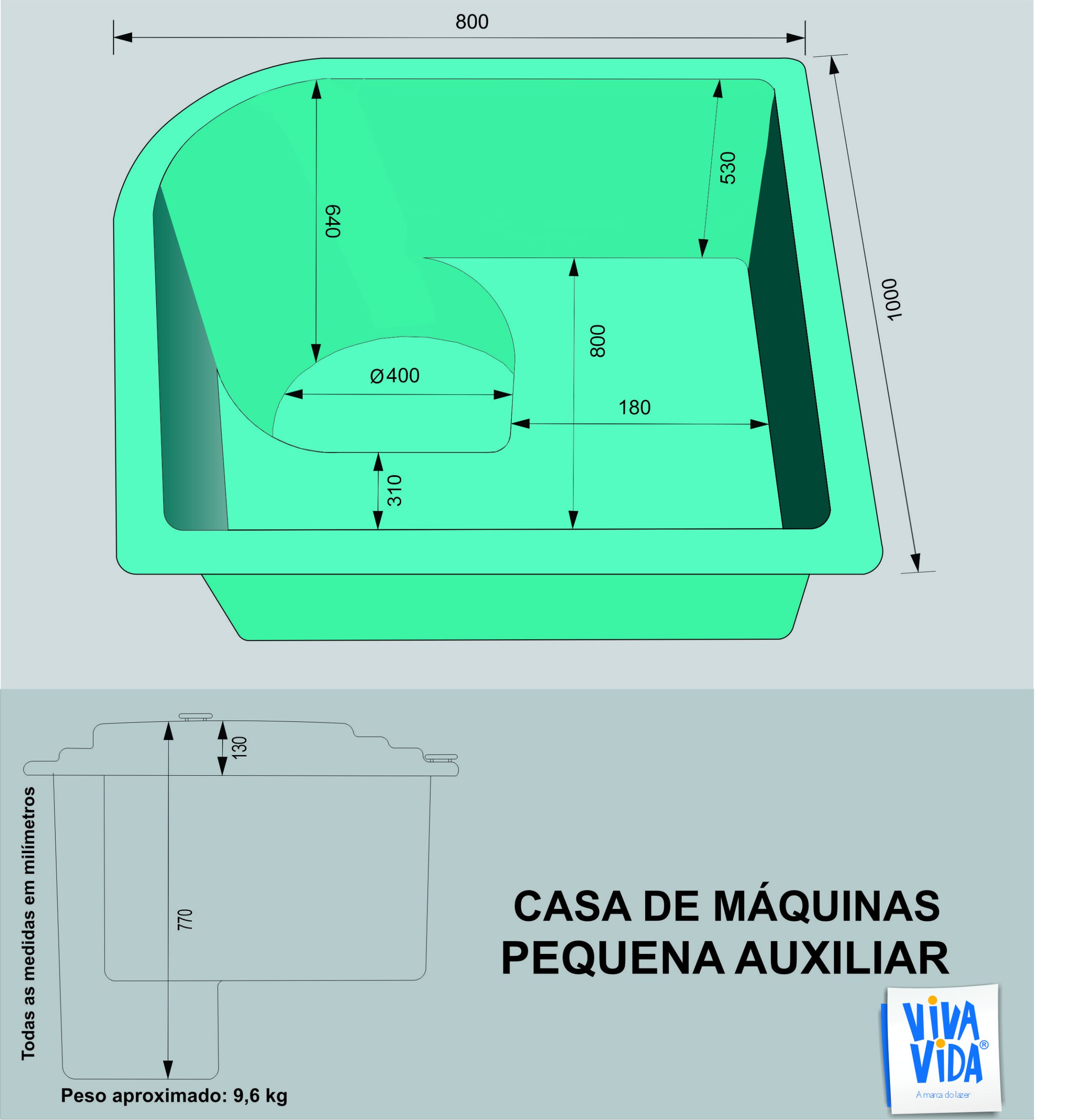 As casas de máquinas em fibra Viva Vida apresentam um formato técnico ajustado especificamente para maquinários de piscinas, vem acompanhada de duas dobradiças de aço inox, pegador de mão, limitador para abertura da tampa e respiro superior, que permite mantê-la sempre fechada enquanto o filtro estiver em funcionamento. São fabricados diferentes modelos e tamanhos, otimizando custos de instalações.